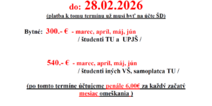 Oznam pre ubytovaných študentov, že ďalší poplatok za ubytovanie je potrebné uhradiť